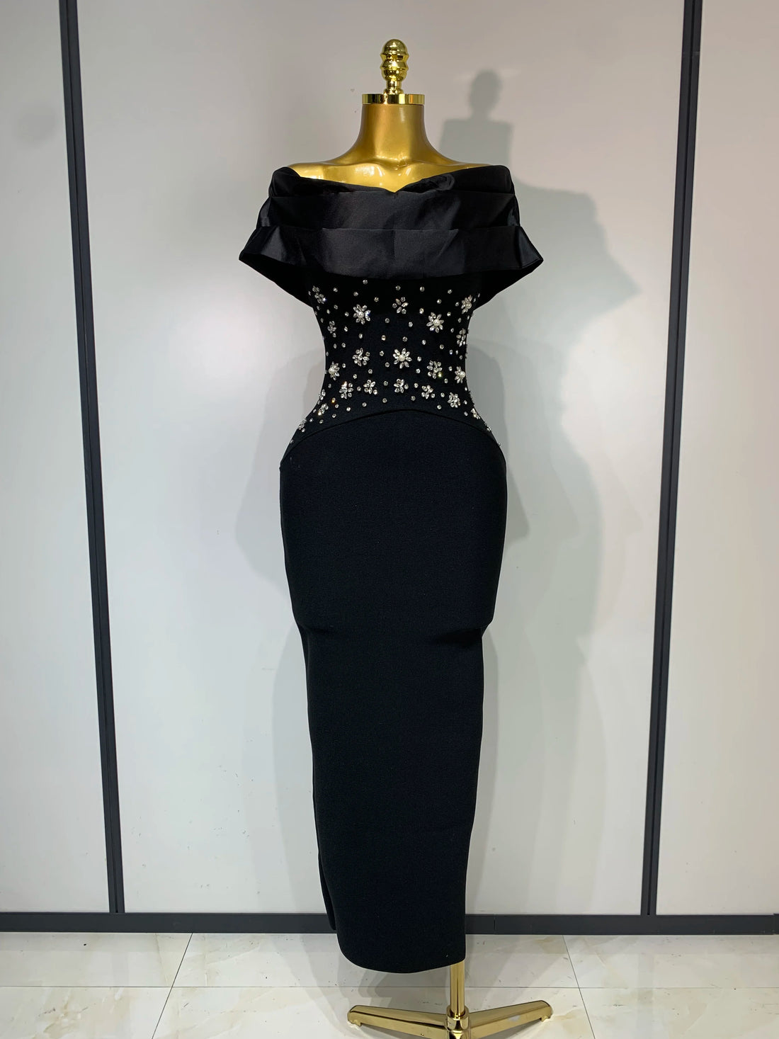 Women Sexy Off Shoulder Diamonds Long Black Bandage Dresses Luxury Birthday Evening Party Elegant Knitted Bodycon Club Dress